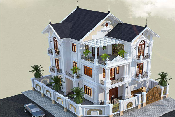 Mẫu 1: Nhà biệt thự mái phái