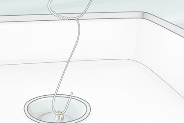 Dùng móc phơi áo móc móc dị vật khỏi ống nước.