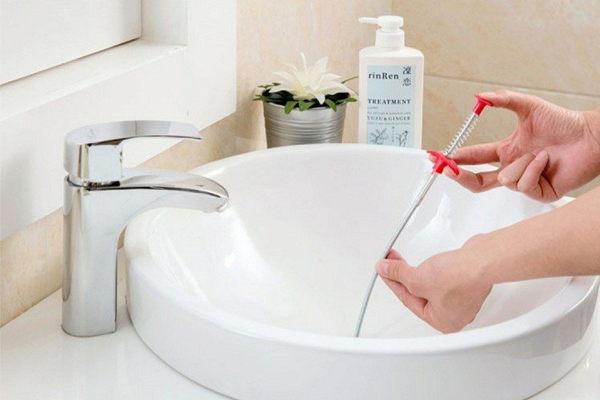 Nếu bị tắc do tóc, hãy bẻ móc thành một cây kim loại dài, phần đầu nhớ bẻ thành cái móc nhỏ để móc tóc ra nhé. Luồn đầu móc xuống đường ống và nhẹ nhàng xoay tròn để đầu móc có thể móc hết tóc ra. Kim loại rất sắc nhọn, hãy cẩn thận khi bẻ cũng như khi sử dụng, tránh gây sứt mẻ bồn rửa.